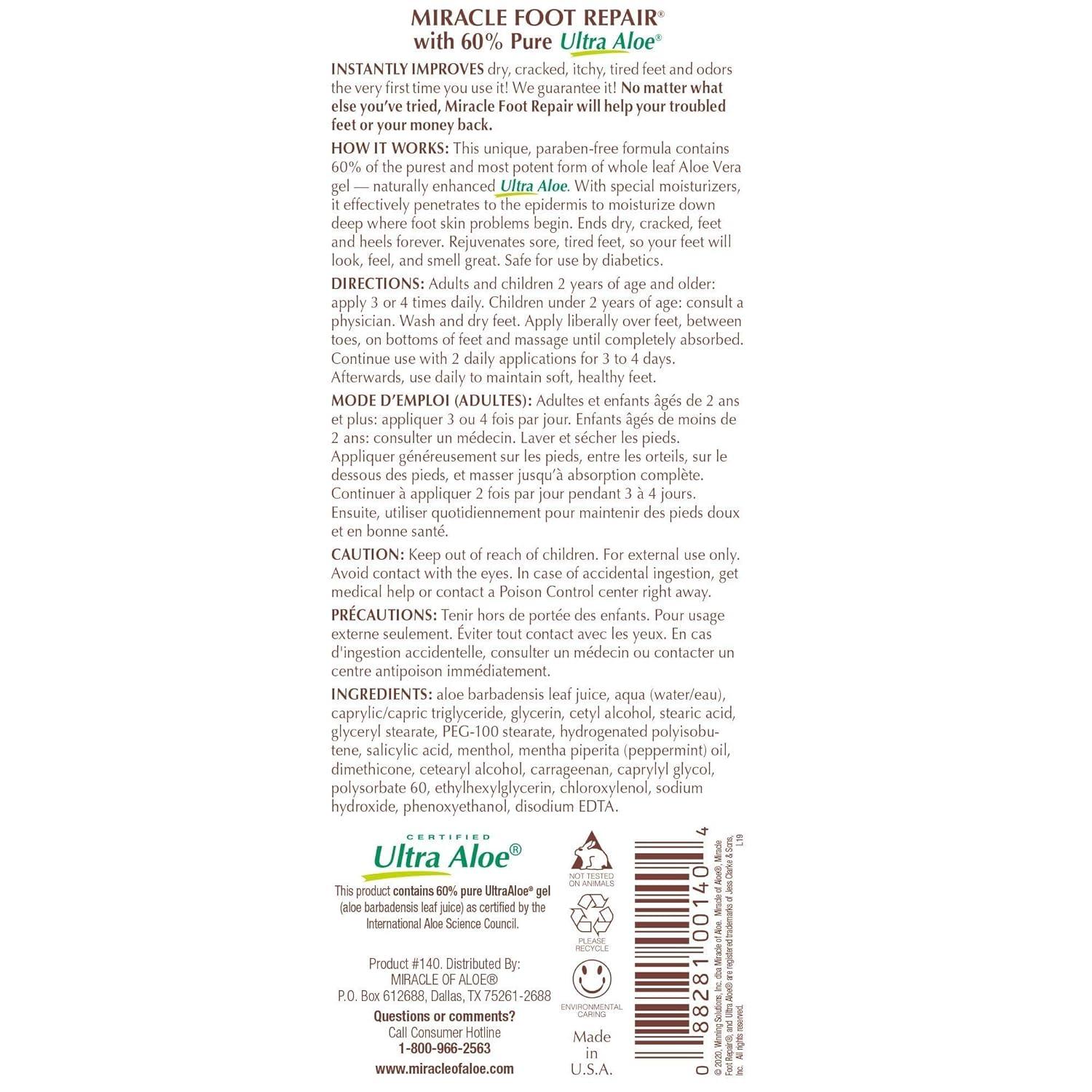 Miracle Foot Repair Cream (8 oz / 4-Pack) Repairs Dry Cracked Heels and Feet, 60% Pure UltraAloe Moisturizes, Softens, and Repairs(4 Ounce (Pack of 2))