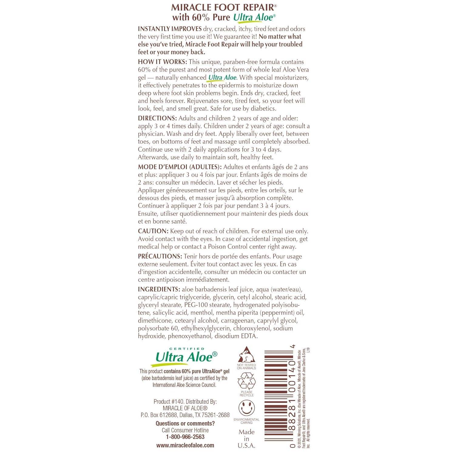 Miracle Foot Repair Cream (8 oz / 4-Pack) Repairs Dry Cracked Heels and Feet, 60% Pure UltraAloe Moisturizes, Softens, and Repairs(32 Ounce (Pack of 1))