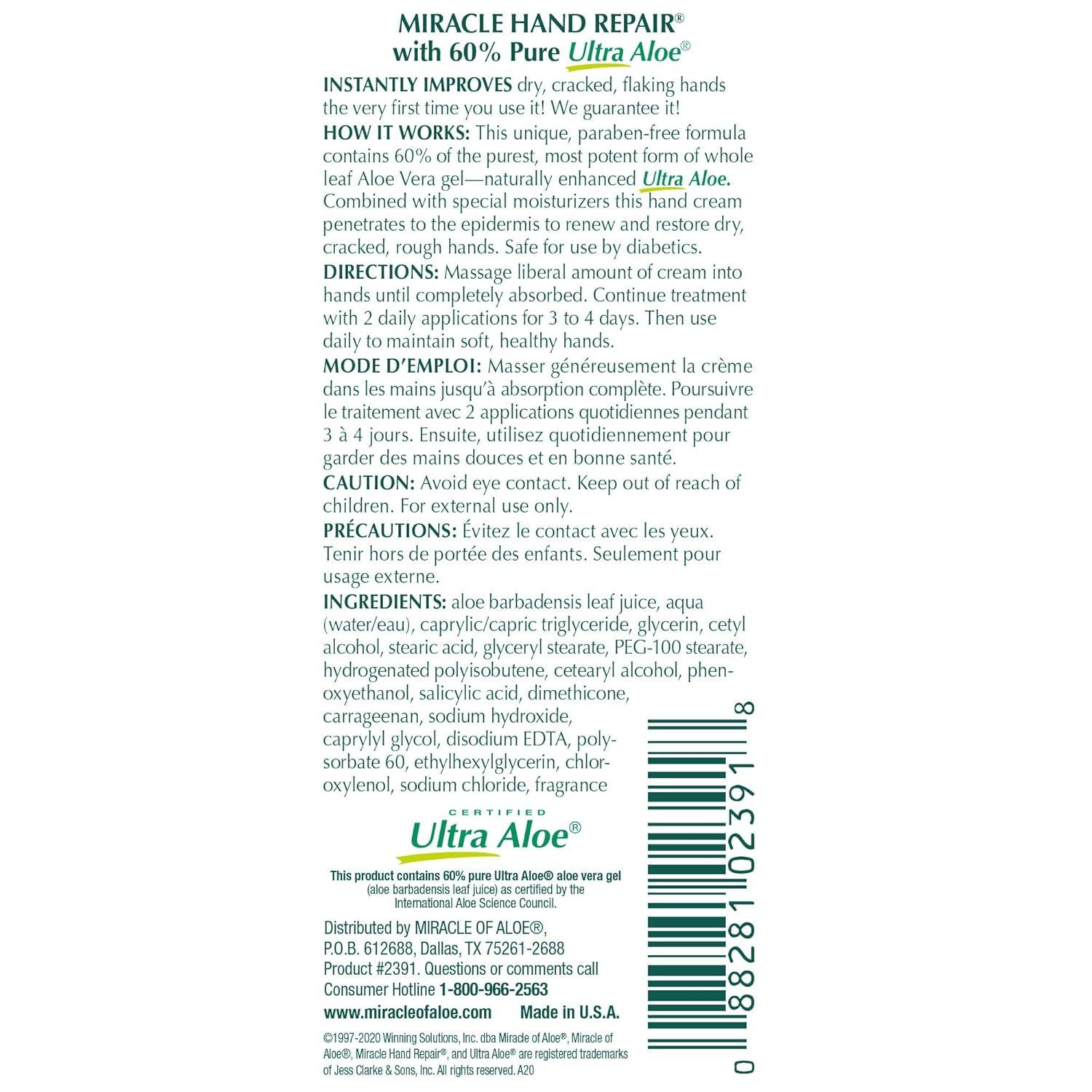 imageMiracle Hand Repair Cream for Dry Cracked Hands 8 oz Best Healing Hand Cream with 60 Aloe Vera  NonGreasy Moisturizer for Working Hands  Fast Absorbing Lotion for Extremely Dry Skin4 Ounce Pack of 2