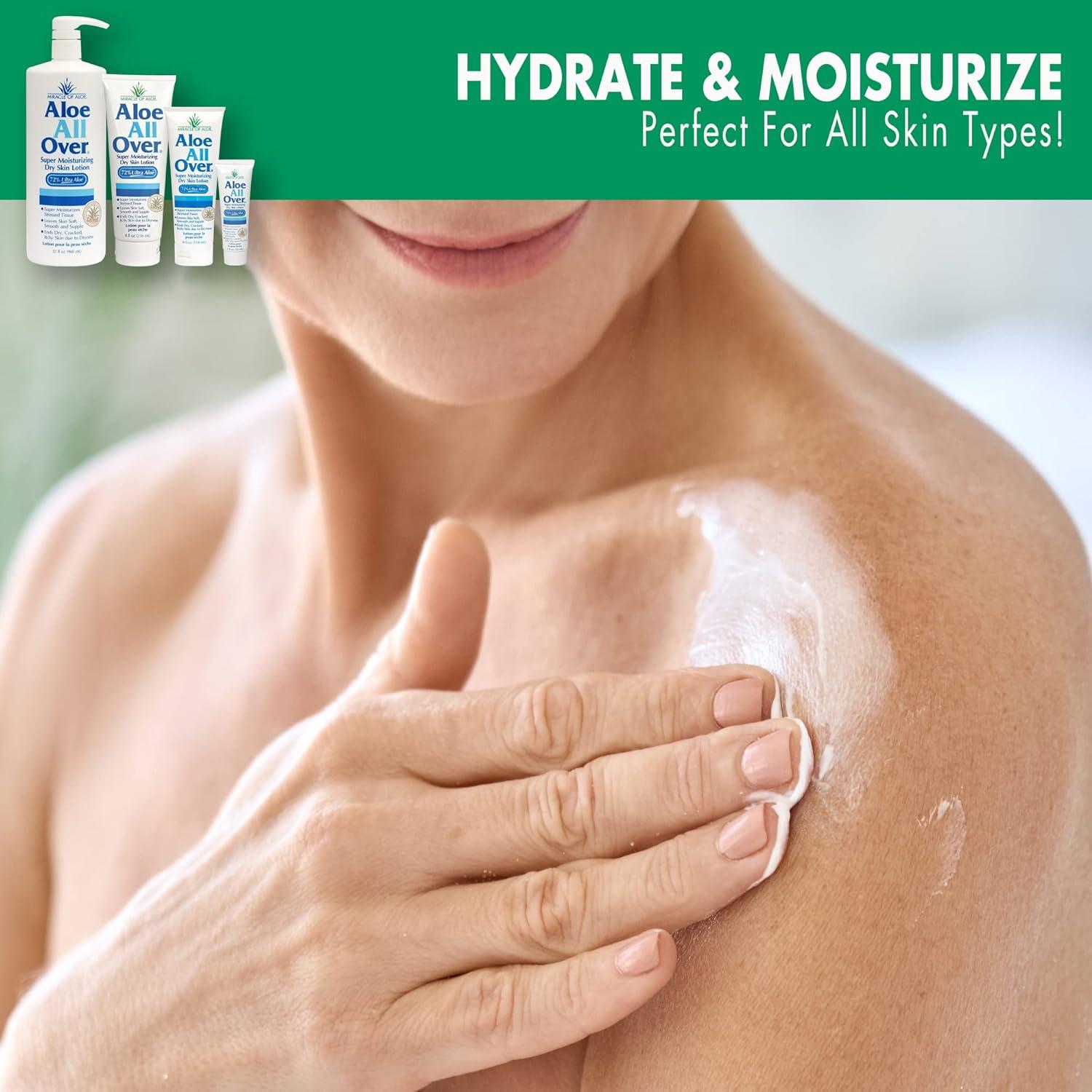 Miracle of Aloe Aloe All Over Super Moisturizing Dry Skin Lotion (3-Pack, 1 oz) - Made with 72% UltraAloe Aloe Vera Gel. Safe for Everyone: Men, Women, Kids. Restores Dry Skin Fast(4 Fl Oz (Pack of 2))